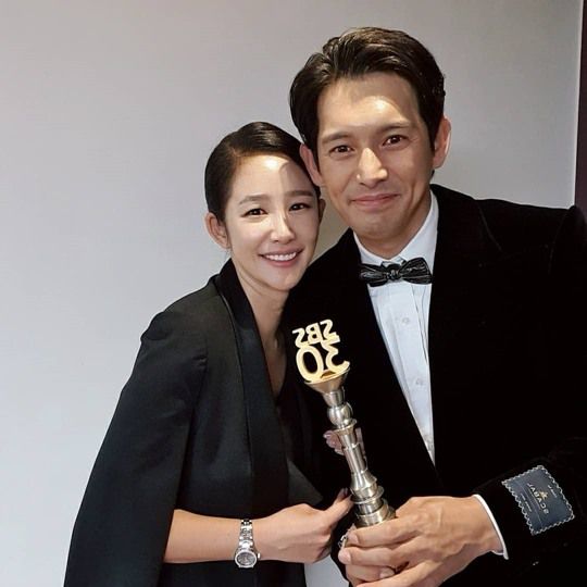 사진 속 은보아는 검은색 드레스를 입고 검은 턱시도를 입은 오지호와 함께 다정하게 웃고 있다. 손에는 SBS 연예대상 트로피가 들려있다. 둘은 19일 진행된 '2020 SBS 연예대상'에서 베스트 커플상을 수상했다.
