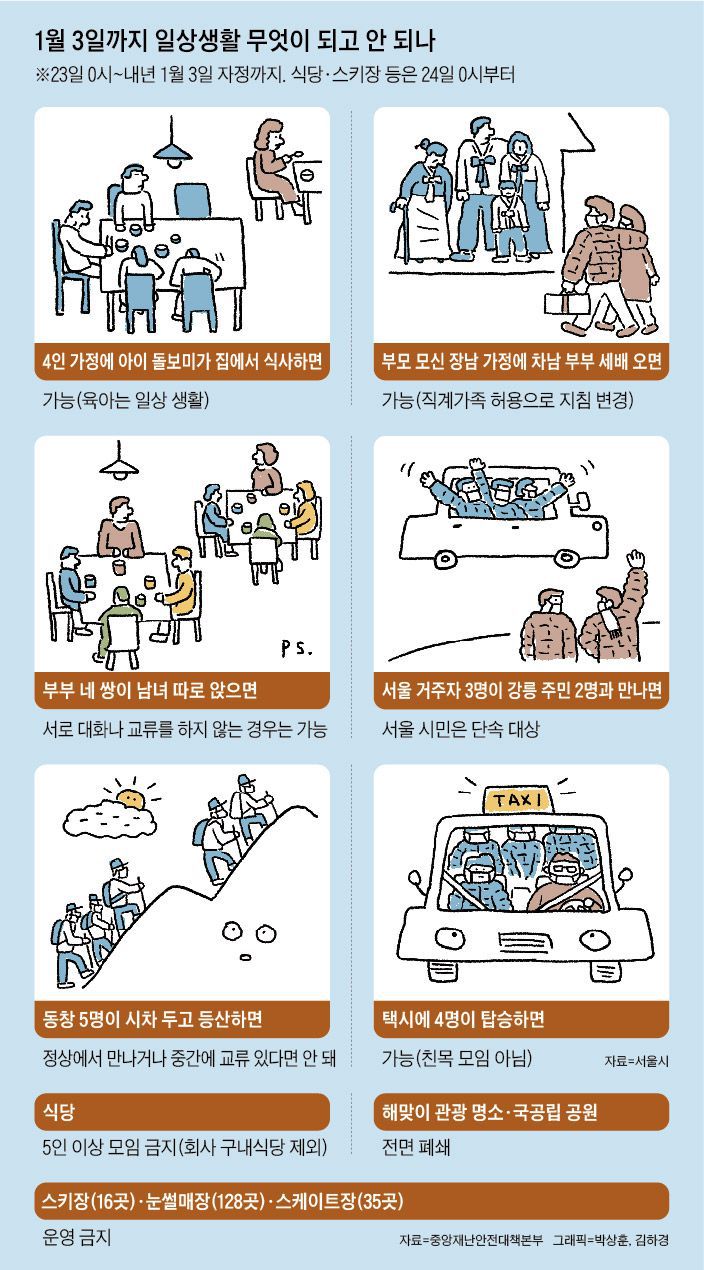 1월 3일까지 일상생활 무엇이 되고 안 되나 / 그래픽=박상훈, 김하경