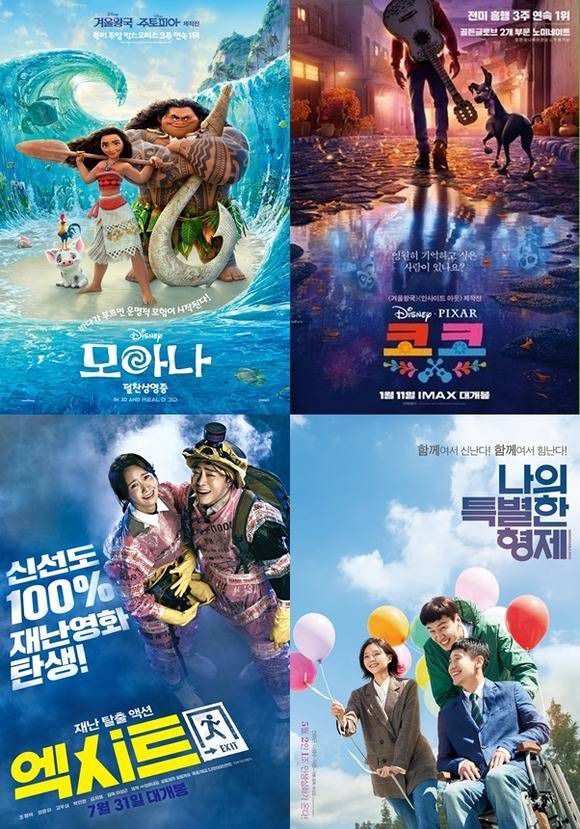 크리스마스를 맞아 24일부터 애니메이션 '모아나'와 '코코' 그리고 드라마 '나의 특별한 형제'와 액션 '엑시트' 등이 방송된다. /각 영화 포스터. 월트디즈니, NEW, CJ엔터 제공