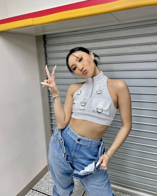 그룹 마마무 멤버 화사가 명품 골반 라인을 인증했다.
