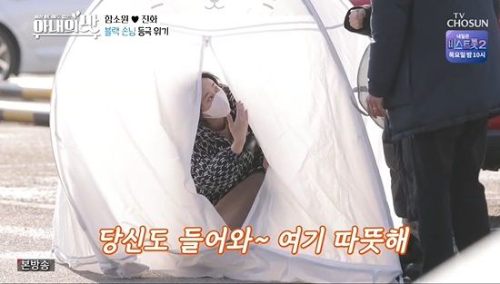 [엑스포츠뉴스 나금주 기자] '아내의 맛' 함소원이 중고거래로 난방텐트를 구입한 가운데, 장영란을 초대했다.