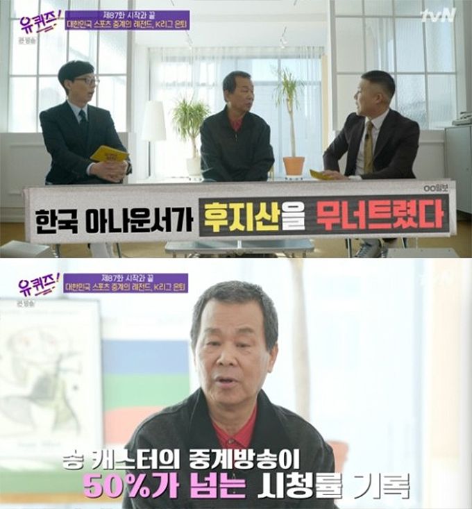 30일 방송된 tvN 예능프로그램 '유 퀴즈 온 더 블럭'에서는 '시작과 끝' 특집으로 한국 스포츠의 살아 있는 전설인 송재익 캐스터를 만났다.