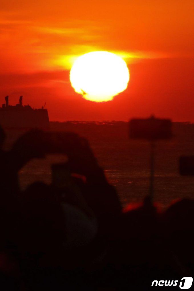 (울산=뉴스1) 윤일지 기자 = 2020년 경자년 첫 날이 밝았다. 1일 오전 해맞이에 나선 시민들이 울산시 울주군 간절곶에서 새해 첫 해돋이를 지켜보고 있다. 2020/1.1/뉴스1
