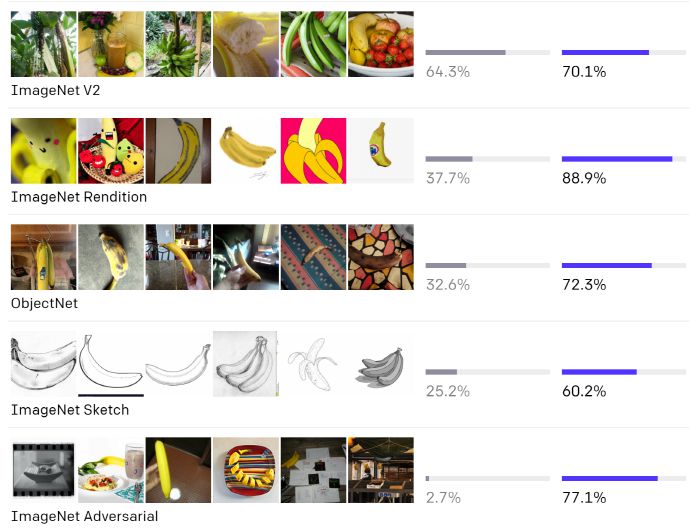 ImageNet 테스트 세트와 CLIP 성능 비교. 출처: OpenAI