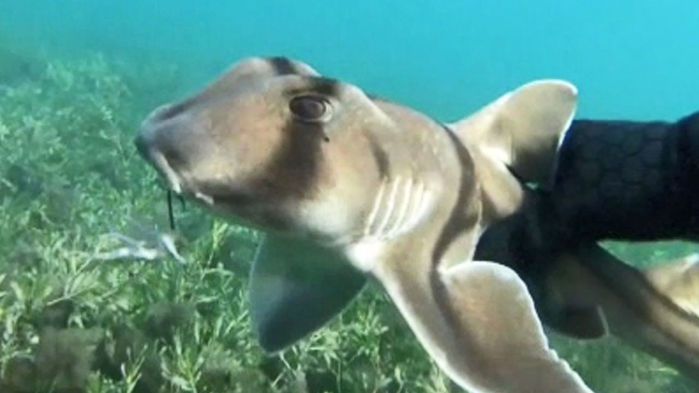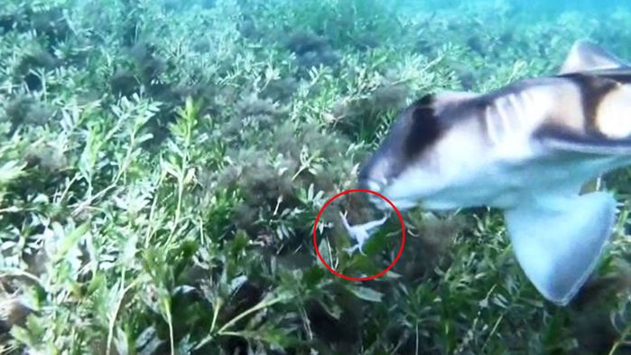 호주에서는 사람이 아무렇게나 버린 낚싯바늘 때문에 고통받는 아기 상어가 발견됐습니다.