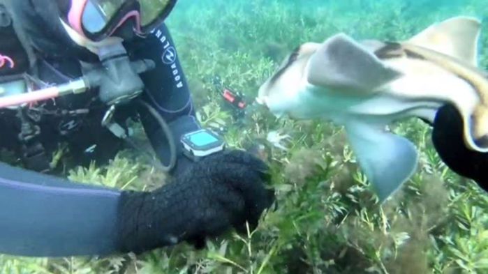 아기 상어는 마치 고마운 마음을 표현하기라도 하는 듯 한동안 주변을 맴돌다가 사라졌다고 합니다.