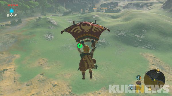 ▲사진='젤다의 전설 브레스 오브 더 와일드'. 패러세일을 통해 비행하는 젤다 아닌 링크.