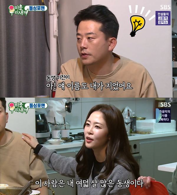 그는 "초등학교 때 좋아하던 여자애한테 고백을 했는데 걔 이름이 김미진이었다. 근데 미진이가 나를 거절했다. 그래서 동생이 태어나자 마자 걔를 기억하려고 얘를 김미진으로 지었다. 근데 엄마는 모른다"고 고백했다.