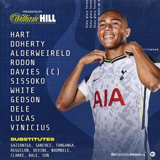 토트넘은 조 하트 골키퍼를 비롯해 맷 도허티-토비 알더베이럴트-조 로돈-벤 데이비스, 무사 시소코-하비화이트, 제드송 페르난데스-델레 알리-루카스 모우라-카를로스 비니시우스가 선발 출장한다.