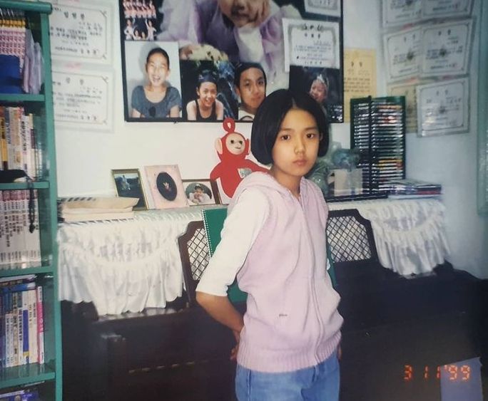 사진 속 강은비는 짧은 단발 머리에 앳되고 귀여운 모습이다. 피아노 앞에서 서서 뒷짐을 지고 서있는 그녀의 등 뒤로 수많은 상장들과 함께 책들이 보여 눈길을 사로잡고 있다.