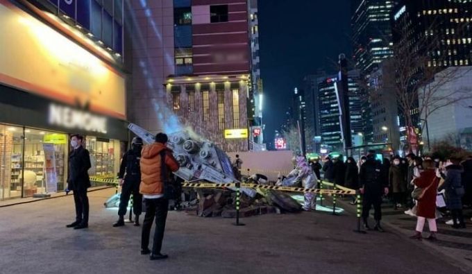 넷플릭스 영화 '승리호'가 서울 강남역 인근에 우주선이 추락한 듯한 홍보용 퍼포먼스를 선보여 화제다.