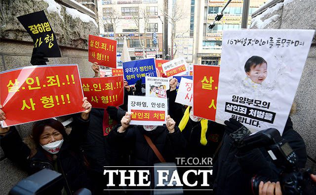 [더팩트ㅣ김세정 기자] 입양한 16개월 딸을 학대해 사망에 이르게 한 부부가 처음 법정에 선 가운데 법원은 시민들의 분노로 가득 찼다. 양부는 세간의 시선을 피해 아침 일찍 법원에 들어간 것으로 확인됐다.