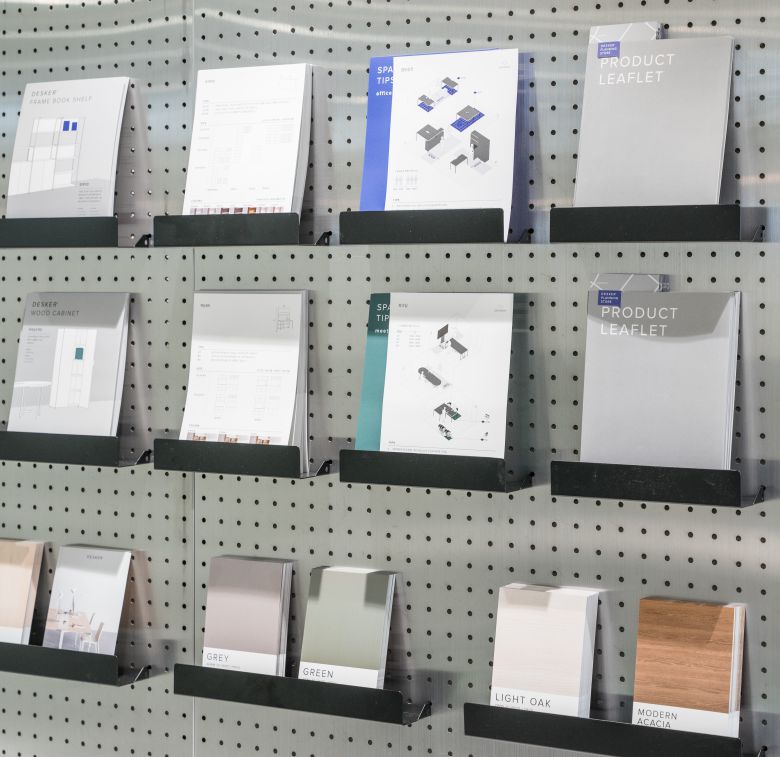 나서는 길 오른편에 마련된 공간에 쇼룸을 방문한 모든 분들이 현장에서 얻은 팁과 인사이트, 아이디어를 고스란히 떠올리며 고민하고 결정할 수 있도록, 데스커 플래닝스토어는 현장의 정보들을 다양한 엽서와 카드, 팜플렛으로 만들어 두고 있다. 모든 방문자는 해당 자료들을 자유롭게 가져갈 수 있다.