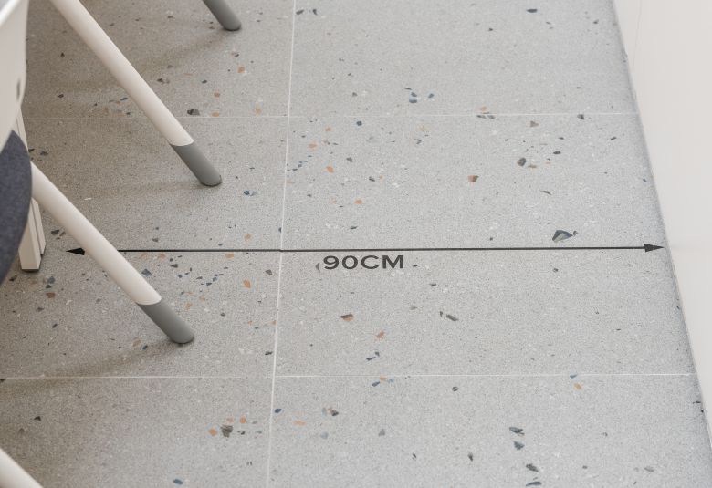 공간을 둘러보다 보면, 곳곳에 ‘통로 폭 제안선’이 위치해 있다. 이 안내선은, 의자를 빼고 넣을 때 필요한 최소한의 공간을 표시해둔 선으로, 오피스를 구성하고 있는 고객들이 구성원의 동선을 고려하여 가구를 배치할 수 있도록 도와준다. 사소한 배려지만, 오피스 인테리어를 처음 시도해보는 고객들을 위해 세심한 배려가 돋보이는 부분이었다.