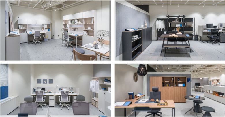 다양한 레이아웃의 오피스 쇼룸이 준비되어 있는데, 이 공간을 둘러보다 보면 마치 훌륭한 ‘사무실판 모델하우스’에 온 듯한 느낌을 준다. 오피스 모델하우스처럼, 직접 사무실을 인테리어 하고 꾸며보지 않더라도 쇼룸을 통해 생생하게 상상하고, 직접 적용해볼 수 있도록 구성된 공간이다.