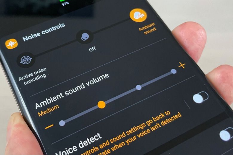 필자는 갤럭시 버즈 프로를 삼성 갤럭시 노트 20과 페어링한 후(과정은 1분도 채 걸리지 않고 문제없이 진행됨), 삼성 웨어러블 앱을 실행해 버즈의 액티브 노이즈 캔슬링 기능을 테스트했다.삼성에 따르면 버즈 프로는 주변 소음을 99%까지 차단할 수 있다. 필자의 예비 테스트에서 버즈는 식기 세척기의 낮은 울림과 플로어 팬의 윙윙거리는 소리를 차단하는 인상적인 일을 해냈다. 그러나 기계식 키보드의 딸깍 거리는 소리와 아이의 원격 수업에서 들리는 음성 같이 더 높은 대역의 소리는 여전히 들을 수 있었다. 노이즈 캔슬링 이어폰이 주로 저주파 소리를 차단하는 것은 드문 일이 아니지만, 그래도 주목할 필요가 있다.