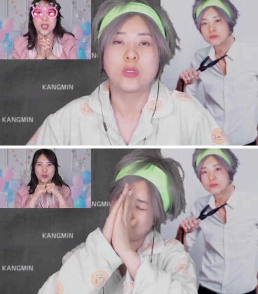이어 가상의 아이돌 '강민'으로 변신한 강유미와 영상통화 팬 사인회가 시작되자 팬을 연기하는 강유미는 환호성을 지르며 감탄하다가 준비한 대사들을 떨리는 목소리로 이어갔습니다. "민아, 나 앨범 260장 사서 민이 포토카드 50장 모았어. 박수 쳐줘"라고 팬이 말하자 강민은 "아 진짜요?"라며 건조하게 반응했고, 이후로도 강민은 금방이라도 잠들 것 같은 눈으로 팬의 모든 말에 "아 진짜요?"로 대답했습니다.