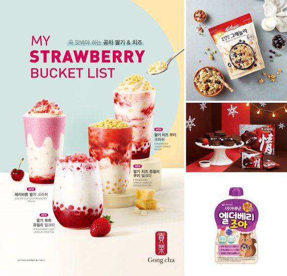 딸기만큼이나 친숙한 블루베리를 활용한 식품도 눈길을 끈다. 농심켈로그는 최근 '블루베리 아몬드 그래놀라'를 선보였다. '블루베리 아몬드 그래놀라'는 귀리, 쌀, 통밀, 옥수수 등을 뭉친 통곡물에 블루베리와 아몬드를 자연 모습 그대로 곁들인 제품으로 새콤하고 고소한 맛이 조화를 이룬다.