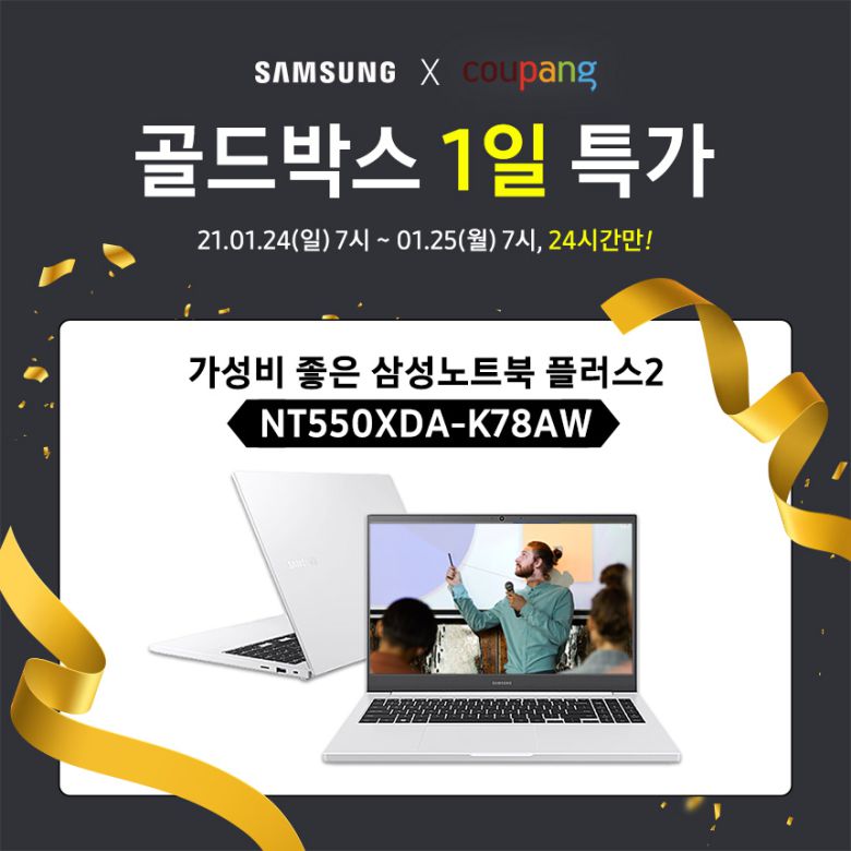 [smartPC사랑=임병선 기자] 삼성 노트북 온라인 공식파트너 코인비엠에스는 삼성전자 인기 노트북인 가성비 좋은 '노트북 플러스2 NT550XDA-K78AW'를 쿠팡 골드박스에서 즉시 할인한 파격적인 가격으로 만날 수 있다고 밝혔다. 또한, 최대 10% 카드 할인, 최대 5만원 적립이 가능하다.