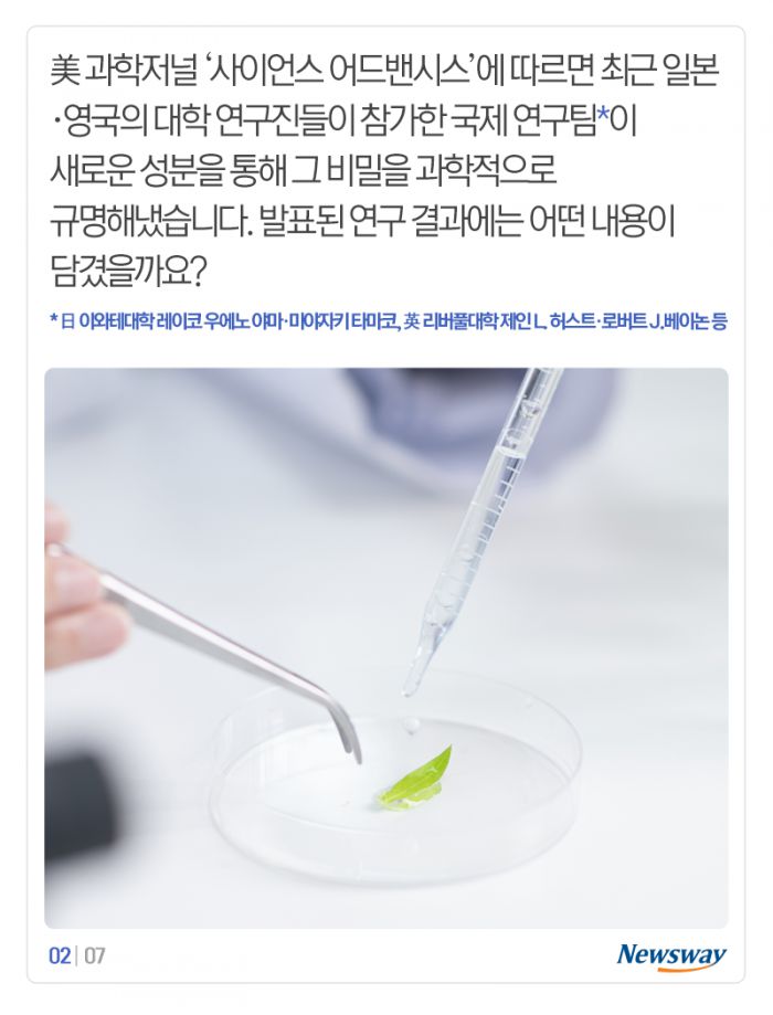 美 과학저널 ‘사이언스 어드밴시스’에 따르면 최근 일본·영국의 대학 연구진들이 참가한 국제 연구팀이 새로운 성분을 통해 그 비밀을 과학적으로 규명해냈습니다. 발표된 연구 결과에는 어떤 내용이 담겼을까요?