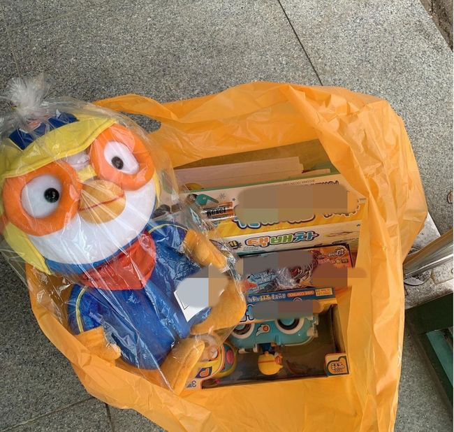 함께 공개한 사진 속에는 뽀로로 등 아이들이 좋아할 만한 장난감들이 비닐에 담겨져 있다. 함소원이 후원하는 아이들에게 전달한 것으로 보인다.