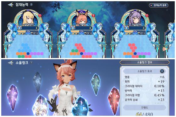 특히 매력 요소는 ‘그랑사가’의 캐릭터 성장 요소 중 하나인 잠재능력이다. 캐릭터 레벨에 따라 잠재능력을 개방할 수 있는 포인트(CP)를 받게 된다. 잠재능력은 일종의 스킬 트리 방식으로 구성돼 이용자 선택의 묘미를 확보했다. 자신이 원하는 경로를 따라 능력을 개방하는 재미가 쏠쏠하다.
