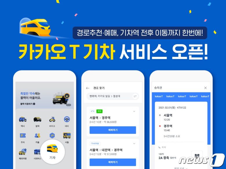 오는 2월1일부터 카카오T에서 기차 서비스를 이용할 수 있게 된다. (카카오모빌리티 제공) © 뉴스1