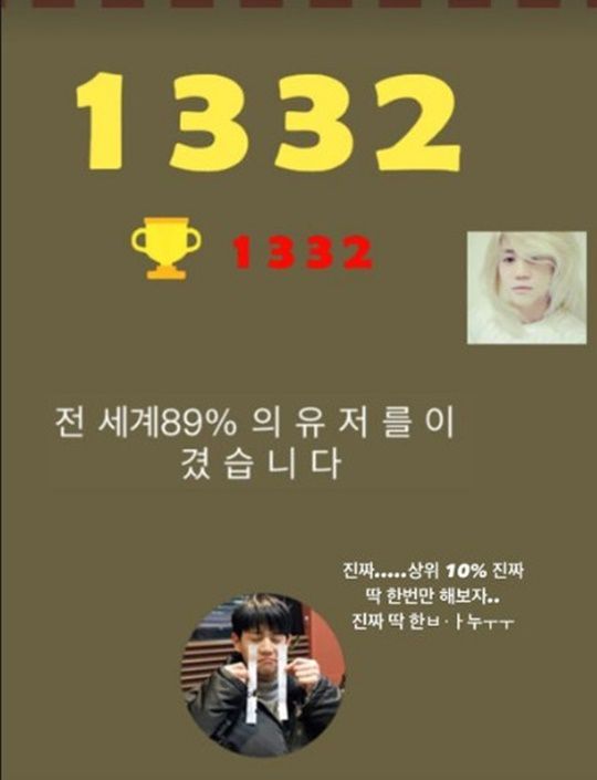 공개된 사진은 양요섭의 수박게임 결과로, '1332. 전 세계 89%의 유저를 이겼습니다'라는 문구가 써있다. 양요섭은 해당 글 밑에 우는 시늉을 한 사진을 첨부하며 결과에 아쉬움을 드러냈다.