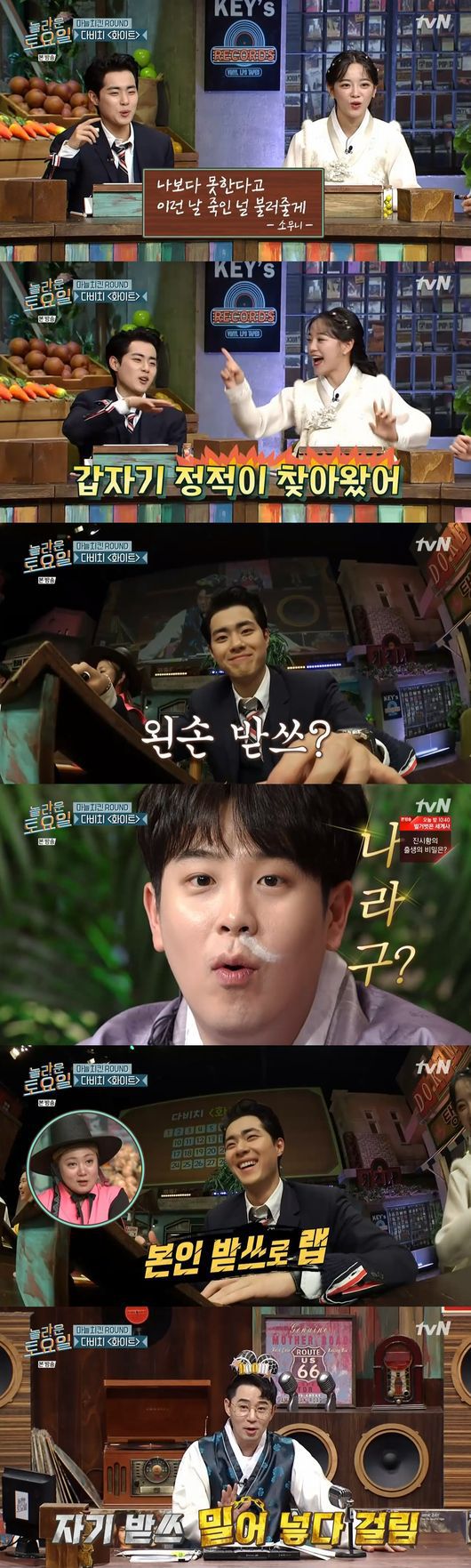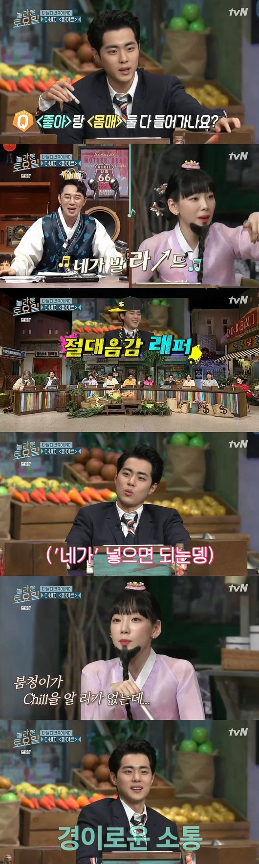 이날 1라운드는 이정현의 '야' 받쓰를 시작했다. 도레미들과 조병규, 김세정은 끝까지 헷갈려 했지만 결국 성공했다. 2라운드는 철판 마늘치킨을 걸고 다비치의 노래 '화이트' 받쓰가 시작됐다. 태연은 "핑클의 '화이트' 아닌가"라고 물었다. 핑클의 대표곡을 다비치가 리메이크한 것. 김세정은 "이 곡으로 특별무대를 만든 적도 있다. 근데 핑클 선배님들 노래였다"라고 말했다.