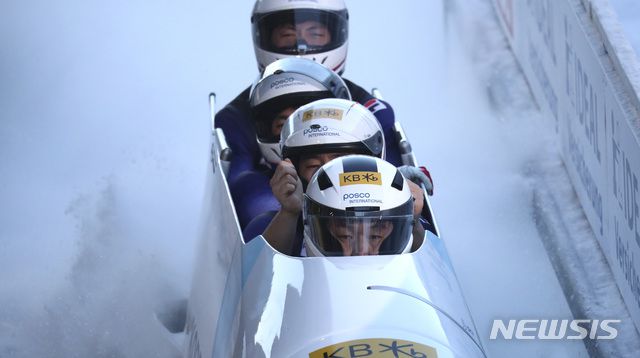 [서울=뉴시스] 안경남 기자 = 원윤종(36·강원도청)이 조종간을 잡은 한국 봅슬레이 4인승 대표팀이 세계선수권대회에서 톱10에 진입했다.