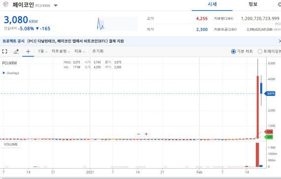 [파이낸셜뉴스] 오는 4월부터 다날핀테크의 블록체인 결제 앱 페이코인에서 비트코인(BTC)을 구매하고 국내 6만개 상점에서 결제할 수 있게 된다는 소식이 나오면서 간밤에 페이코인(PCI)은 업비트에서 2000% 가량 상승했다. 업비트 상장 이후 줄곧 200원 전후로 거래되던 페이코인이 하루만에 5300원대까지 오르며 25배 이상 폭등했다.