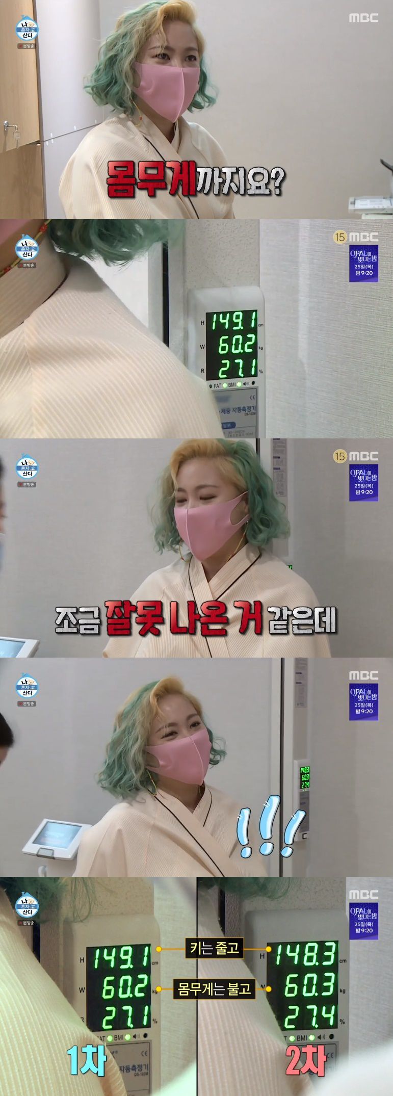 측정 결과 키는 149.1cm에 몸무게는 60.2kg이 나왔다. 박나래는 깜짝 놀라 "선생님 조금 잘못 나온 것 같은데 한번만 다시 해보면 안되냐"라고 해 웃음을 샀다.