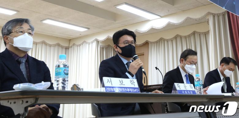황운하 더불어민주당 의원이 지난 23일 오전 서울 여의도 이룸센터에서 열린 수사-기소 완전 분리를 위한 중대범죄수사청 설치 입법 공청회에서 인사말을 하고 있다./뉴스1 © News1 신웅수 기자