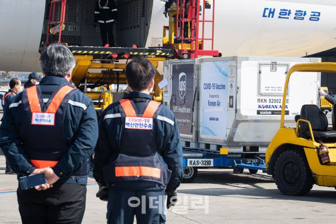 극저온 상태로 암스테르담에서 인천공항까지 대한항공 화물기를 통해 도착한 백신은 이후 군 수송지원본부 호위 하에 서울국립중앙의료원 등 5개 도시의 접종센터로 안전하게 배송된다.