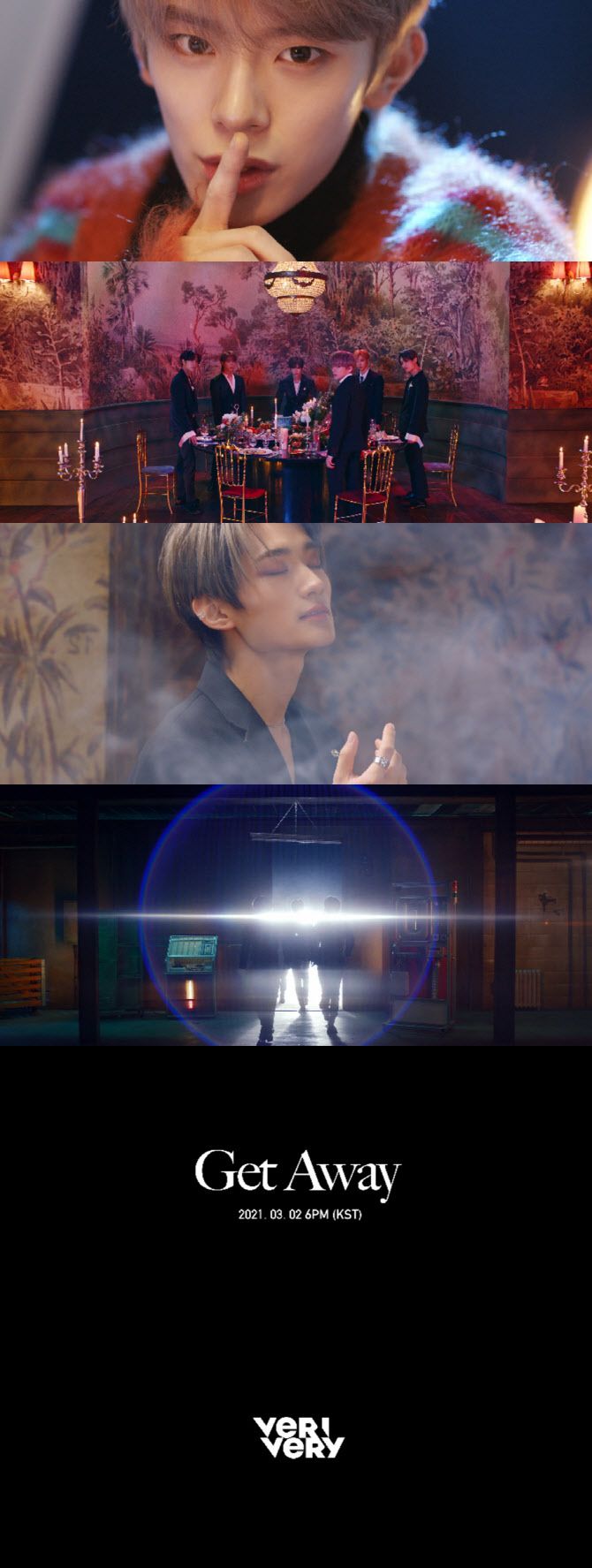 공개된 티저에서는 타이틀곡 ‘겟 어웨이’ 하이라이트 메들리 부분을 배경으로 제각각 달라진 베리베리의 모습을 영상으로 최초 공개했다. 한 편의 영화 같은 티저로 베리베리는 어떤 이의 초대를 받아 화려하고 웅장한 파티장으로 이동한다.