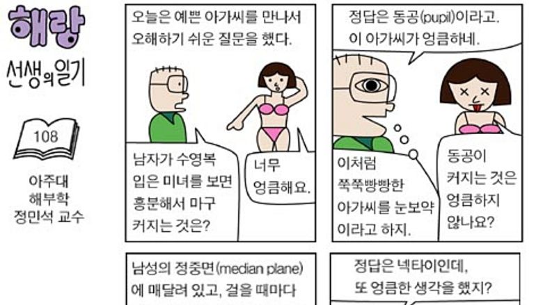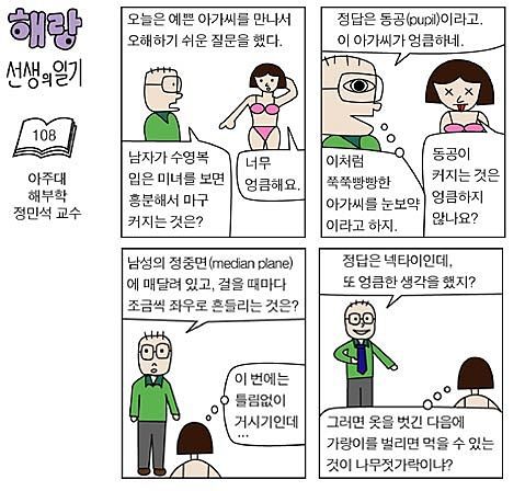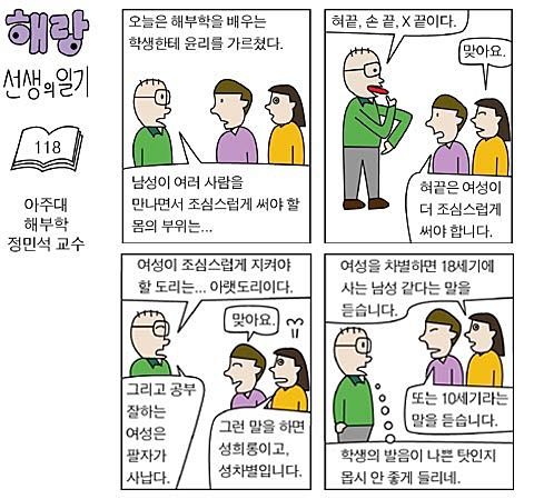 '부적절한 내용이 다수 포함됐다'는 누리꾼들의 지적이 이어진 해당 만화는 정 교수가 아주대학교 공식 홈페이지 '아주스토리' 등에 연재한 '해랑 선생의 일기' 일부입니다.