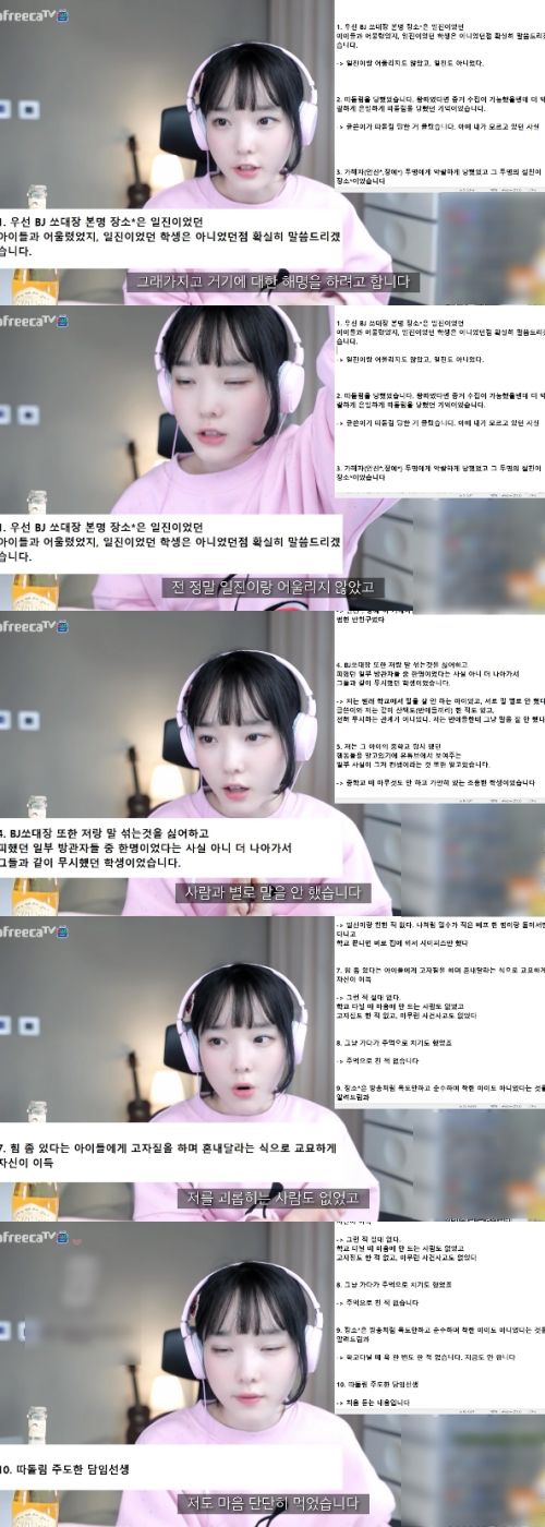 따돌림을 주도한 담임 선생님에 대한 이야기에도 처음 듣는 내용이라고 대답했으며 “저도 마음 단단히 먹었다”라고 마무리 지으며 학교폭력 폭로에 대해 좌시하지 않을 것이라 경고했다.