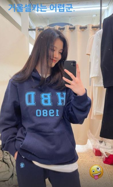 배우 김유정은 4일 오후 자신의 인스타그램 스토리에 "거울 셀카는 어렵군"이라는 글과 함께 한 장의 사진을 게재했다.