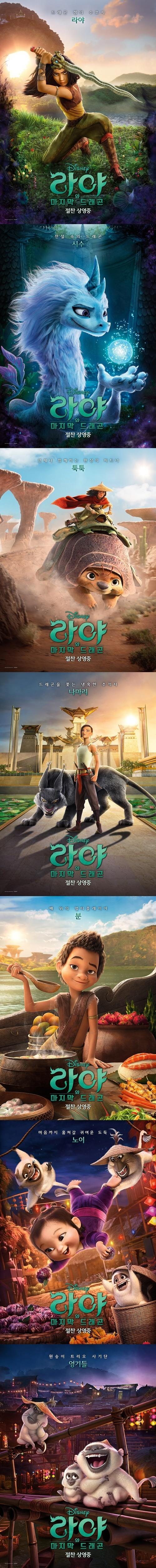 이처럼 각양각색 매력 넘치는 캐릭터 포스터 7종을 전격 공개한 디즈니 애니메이션 '라야와 마지막 드래곤'은 전국 극장에서 절찬 상영 중이다.