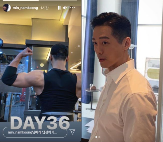 남궁민은 11일 오후 자신의 인스타그램 스토리에 “DAY 36”이라고 적힌 사진 한 장을 올렸다. 사진에서 그는 헬스장에서 운동 삼매경에 빠져 있다. 운동으로 다져진 엄청난 근육질 몸매가 인상적이다.
