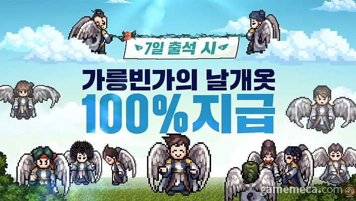 마지막으로 PC 원작에서 많은 인기를 얻은 '가릉빈가의 날개옷'이 추가됐다. 게임에 접속할 때마다 가릉빈가의 날개옷 제작 재료 천사의 깃털을 지급하고, 7일간 매일 접속하면 날개옷을 획득할 수 있다.