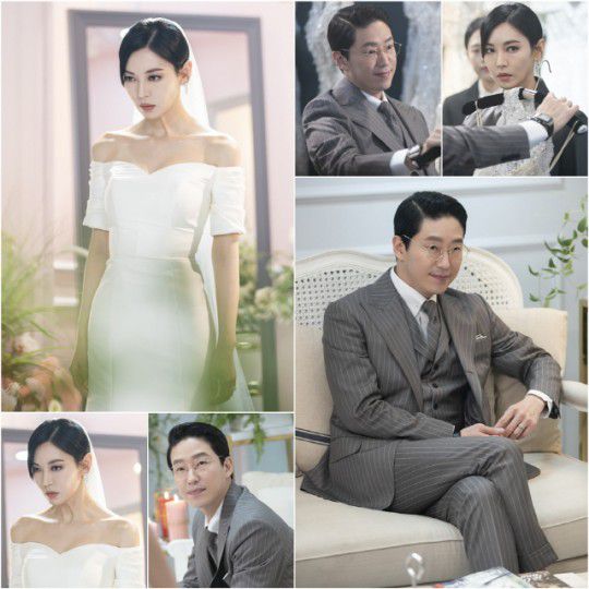 이와 관련 김소연과 엄기준의 표정이 극명하게 대비를 이룬 '상반된 온도차' 투 샷이 공개돼 시선을 강탈하고 있다. 극중 천서진과 주단태가 결혼식 웨딩드레스를 피팅 하는 장면. 주단태가 얼굴에 미소를 띤 채 천서진의 드레스를 골라주고 있는 반면, 천서진은 주단태에게 시선을 두지 않고 차가운 눈빛을 드리우고 있다. 또한 천서진은 웨딩드레스를 입고 나온 후에도 금방이라도 분노를 터트릴 듯 온기가 전혀 느껴지지 않는 얼굴과 날 선 표정을 내비치는 터. 합병 체결식까지만 해도 온화했던 두 사람의 태도가 갑자기 냉랭해진 이유가 무엇인지 호기심을 자극하고 있다.