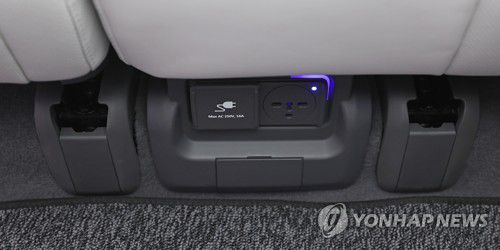 이날 행사에서 공개된 아이오닉 5의 실내 V2L(Vehicle to Load, 차량에서 외부 전력망으로 전기 공급) 포트 모습.