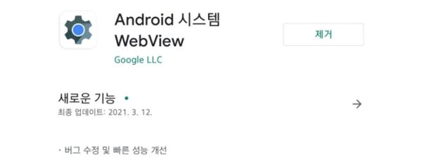 웹뷰는 앱 마켓 구글플레이스토어에서 검색해 삭제할 수 있다.