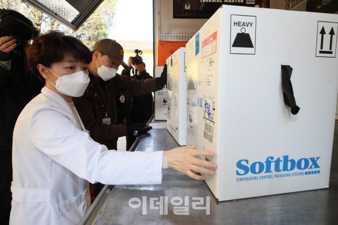 [이데일리 이영훈 기자] 만 75세 이상 고령층 접종에 쓰일 코로나19 화이자 백신 25만명분(50만회분)이 국내에 입고된 가운데 24일 서울 중구 국립중앙의료원에서 중앙예방접종센터 책임약사가 화이자 백신을 확인하고 있다.