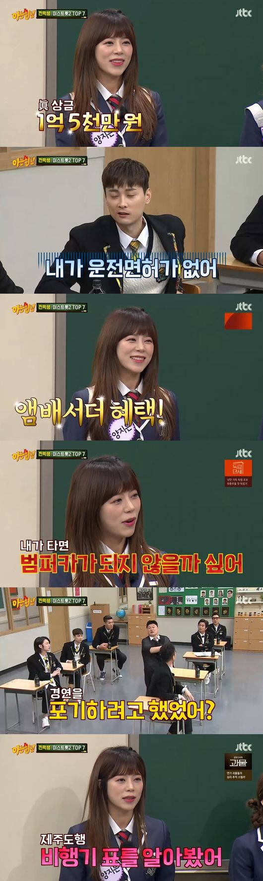 강호동은 "양지은의 성공 스토리가 엄청나다"라고 물었다. 양지은은 "팀 미션에서 탈락했다. 제주도에 있었는데 갑자기 전화가 왔다. 그래서 비행기를 타고 바로 서울로 왔다"라며 "노래를 두 곡 부르라고 하는데 도저히 안될 것 같았다. 다시 내려가려고 비행기 표를 알아봤는데 남편한테 전화가 왔다. 남편이 여기서 내려오면 후회하지 않겠냐고 했다. 그 무대 덕분에 지금 이 자리에 있게 됐다"라고 말했다.