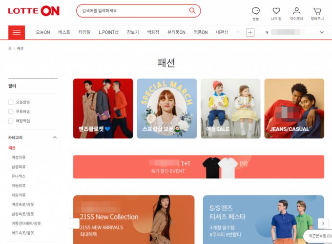 /사진= 롯데온 홈페이지 내 패션 부문 캡쳐 |