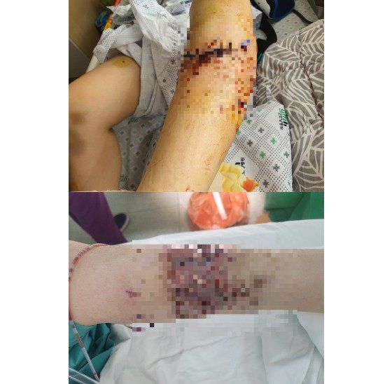 피해자는 다리와 팔 등에 심각한 상처를 입었다. 왼쪽 다리와 오른쪽 팔의 경우 근육이 파열돼 괴사가 진행되기도 했다. 이 씨는 "수술 이후 괴사가 진행돼 병원도 한차례 바꿨고 팔과 다리에만 봉합 수술 3번과 피부이식수술 3번을 받은 상황"이라며 "하마터면 죽을 수도 있었다는 두려움에 정신치료도 함께 받고 있다"고 말했다.