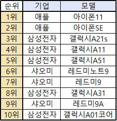 휴대전화 시장만 볼까요. 삼성전자는 세계 스마트폰 시장에서 치열한 경쟁을 이어가고 있습니다. 고가 제품 시장에선 애플에, 저가 시장에선 중국 업체에 밀리는 형국이고요. 실제로 지난해 3분기 스마트폰 출하량 순위를 보면 10위 안에 삼성전자 제품이 5개나 포함돼 있지만, 모두 중상급 제품인 갤럭시 A 시리즈입니다.