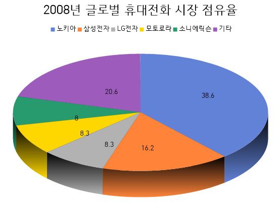 2000년대 후반 휴대전화 업체에는 이른바 '빅5'가 있었는데요, 노키아가 압도적인 선두였고, 삼성전자, LG전자, 모토로라, 소니에릭슨이 뒤를 쫓고 있었죠. 피처폰을 앞세운 LG전자는 '빅3'까지 진입하는 쾌거를 달성하기도 했습니다.